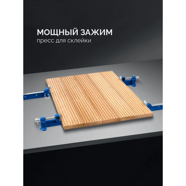 Прочные струбцины с Т-образным профилем ″T-Bar Clamp″ (ваймы) для сжатия с усилием. Головки из высокопрочного чугуна с шаровидным графитом. Т-образная стальная направляющая с сечением 50х20 мм Использование в качестве пресса для склейки деталей. Глубина зажима 42 мм. Ширина зажимных губок 45 мм Винт и фиксаторы из высококачественной стали. Для профессионального использования.