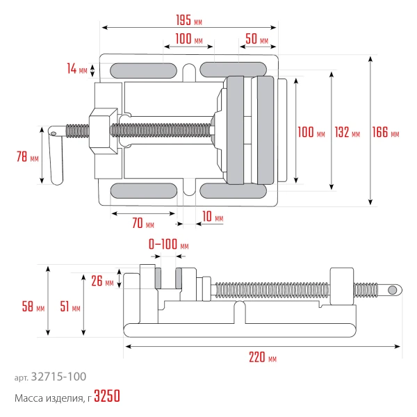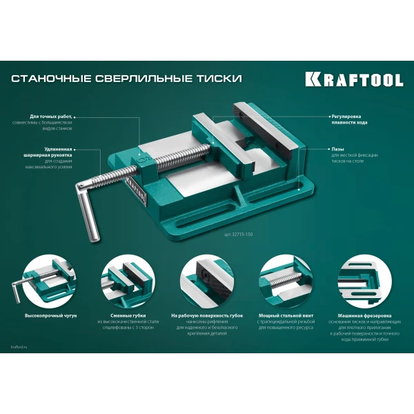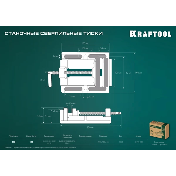 KRAFTOOL 100 мм, станочные сверлильные тиски (32715-100)