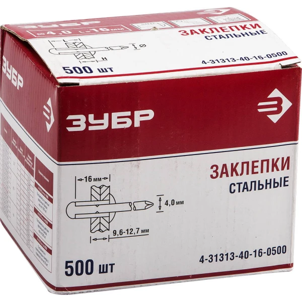 ЗУБР 4.0 x 16 мм, 500 шт, стальные заклепки (4-31313-40-16-0500)