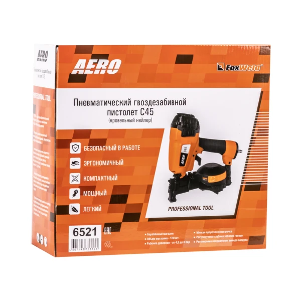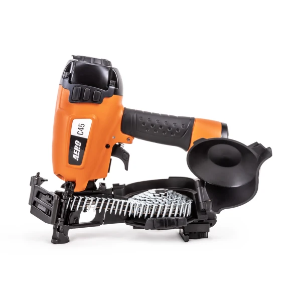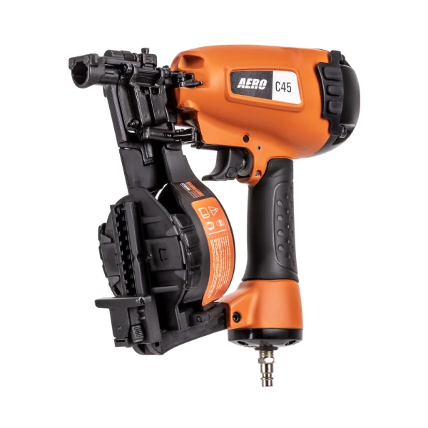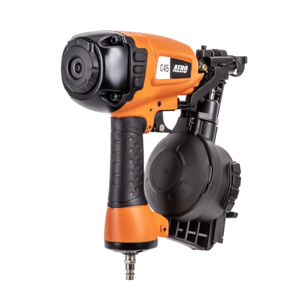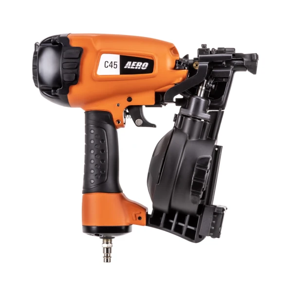 Кровельный пневматический гвоздезабивной пистолет или нейлер AERO C45 - мощный профессиональный инструмент для надежного забивания гвоздей в любую породу дерева.