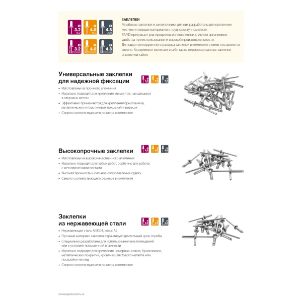 Эти алюминиевые заклепки с улучшенными характеристиками идеально подходят для закрепления элементов, которые могут находиться в незащищенных местах, таких как брызговики, металлические и пластиковые покрытия, вывески и металлические листы. Сверло соответствующего размера входит в комплект поставки.