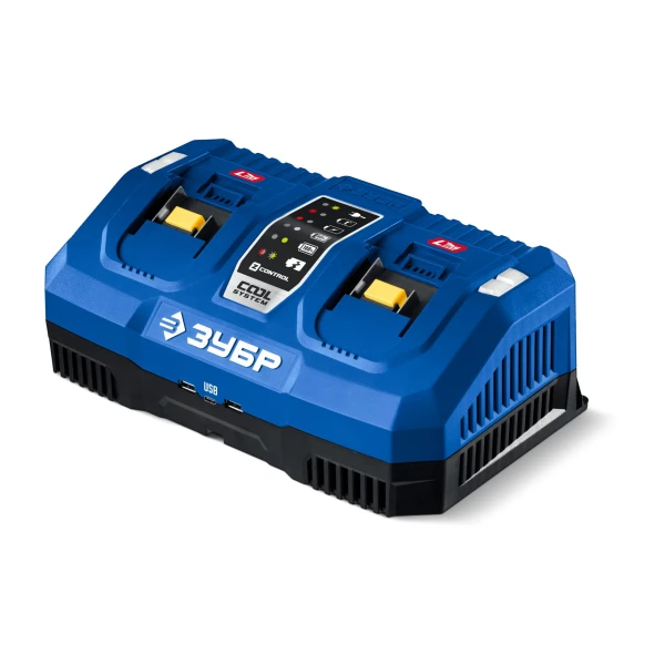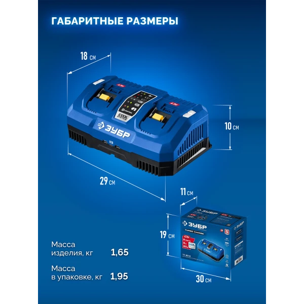 ЗУБР Turbo CHARGE, 20 В, 2 порта, 2 х 9 А, зарядное устройство для LMS АКБ, ПРОФЕССИОНАЛ (TC-20-2)