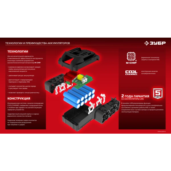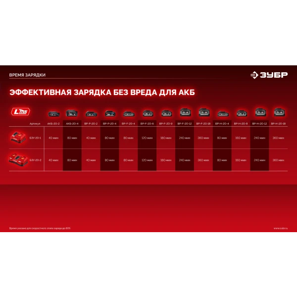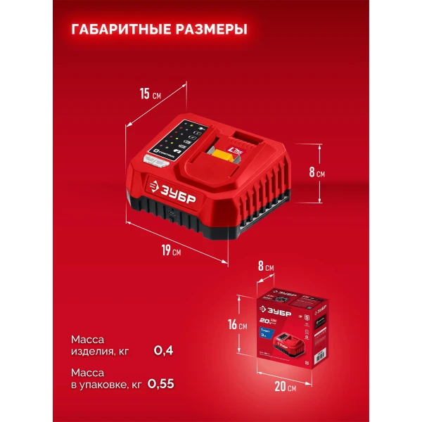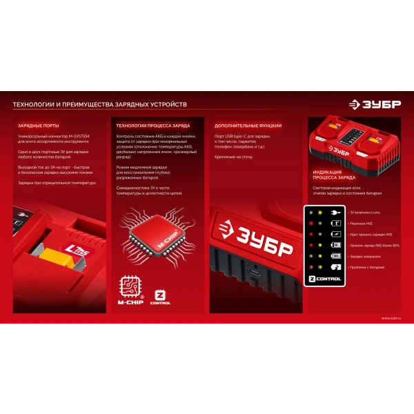 Полностью цифровое интеллектуальное устройство для бережной и максимальной (в отличие от устройств другого типа) зарядки батареи - для полной отдачи Вашего инструмента ЗУБР