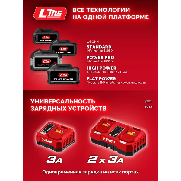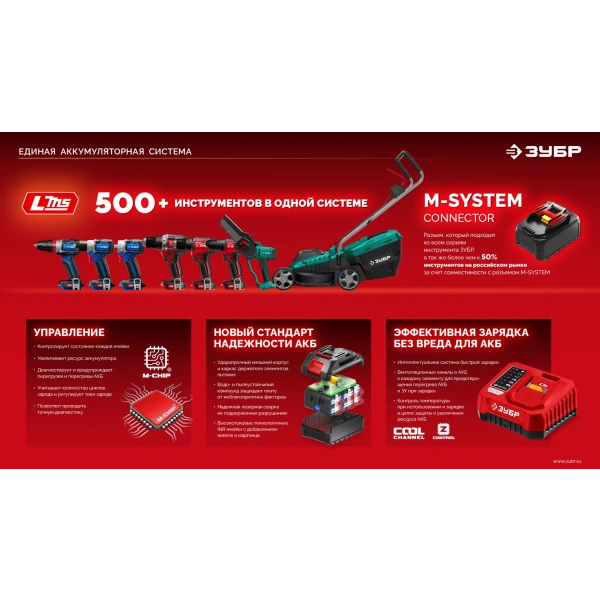 Полностью цифровое интеллектуальное устройство для бережной и максимальной (в отличие от устройств другого типа) зарядки батареи - для полной отдачи Вашего инструмента ЗУБР